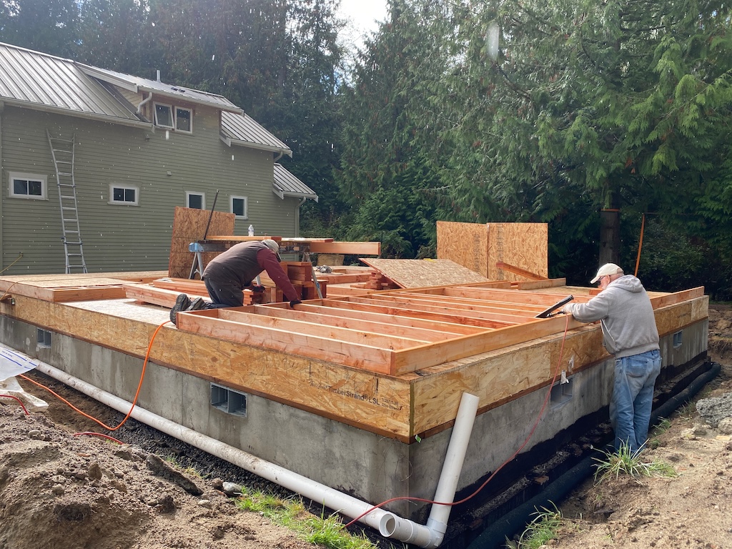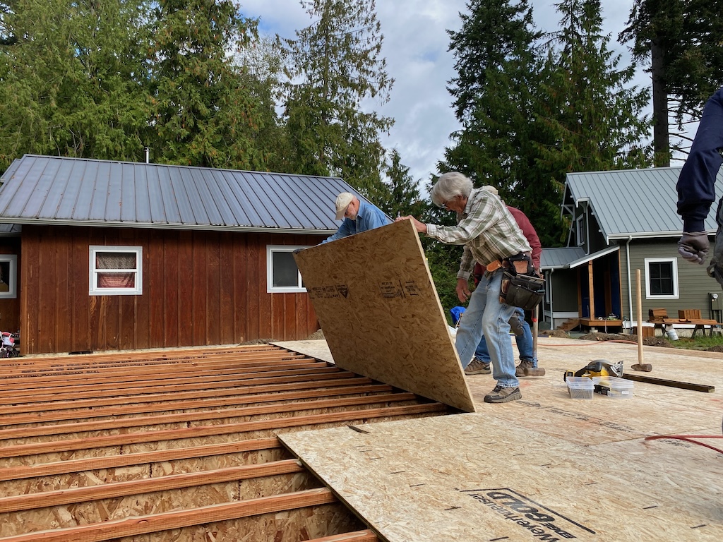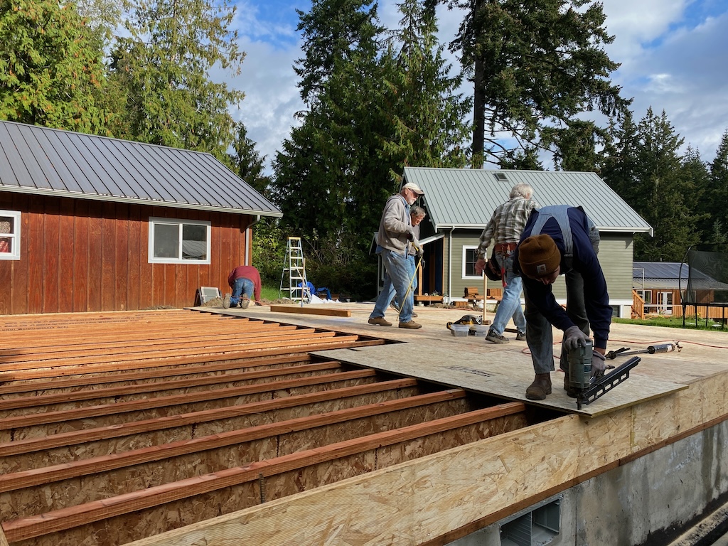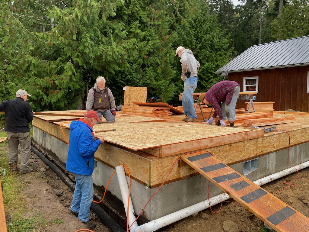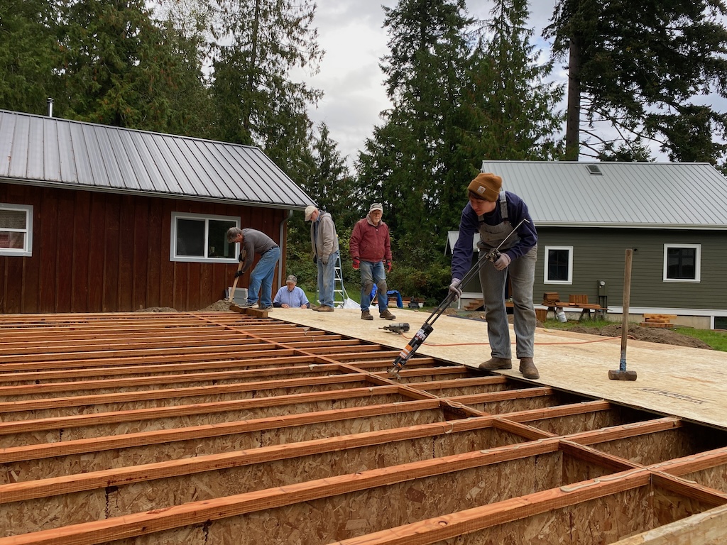In just two days, another spectacular crew – Bob Dalton, Richard Epstein, George Julius, Mike Sheneman, Gabbi Korrow, Tom Peterson, Jim Lee and Gloria Ferry-Brennan – helped install the floor and have now two walls framed.