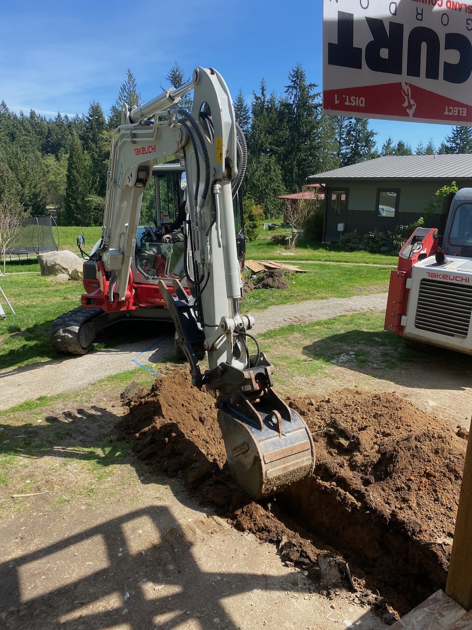Inside, we finished off the last details before drywall could be installed, and outside the drains for sewer and gutters were installed. We passed our insulation and plumbing inspection, and sewer inspections the week of April 14th.