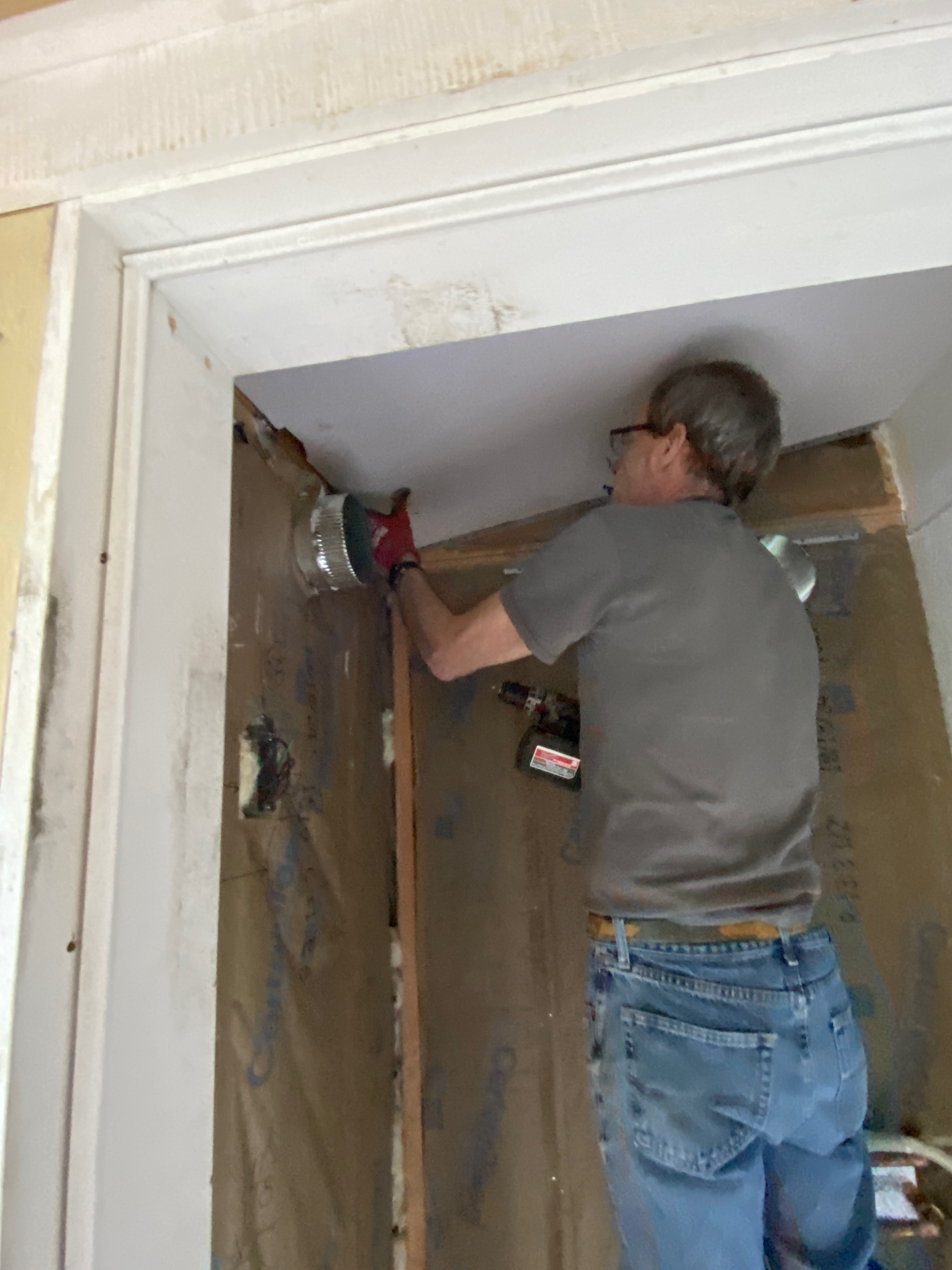Peter Oakley worked on finishing the utility room which will house the hybrid hot water heater, installed the conduit for the fiber optic cable, as well as dealt with many essential details of the cover-up prep.