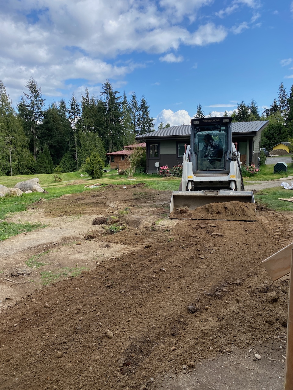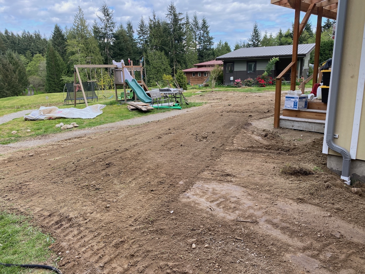 Wade then filled in the trenches, front and back (power and water line trench), and graded. No more piles of soil!