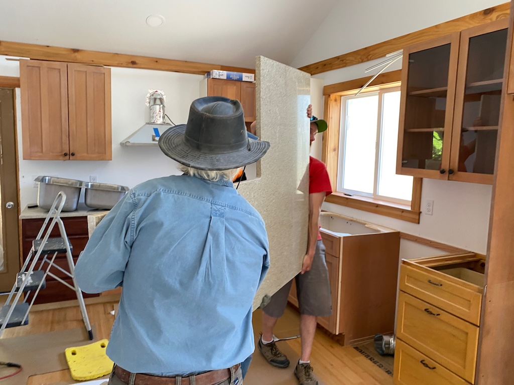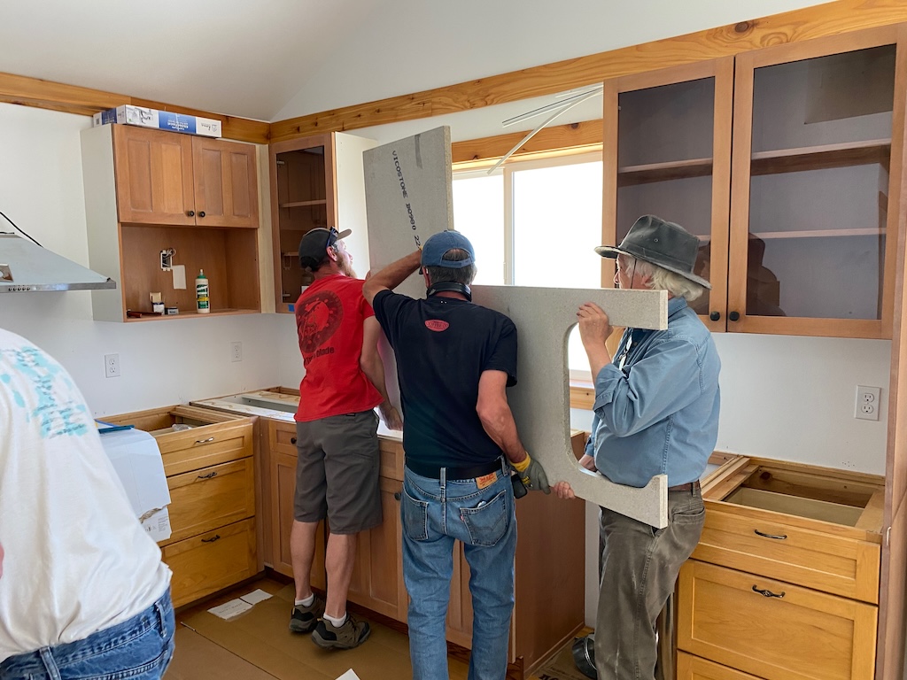 We all helped lift the countertop so Lloyd could guide it into place…