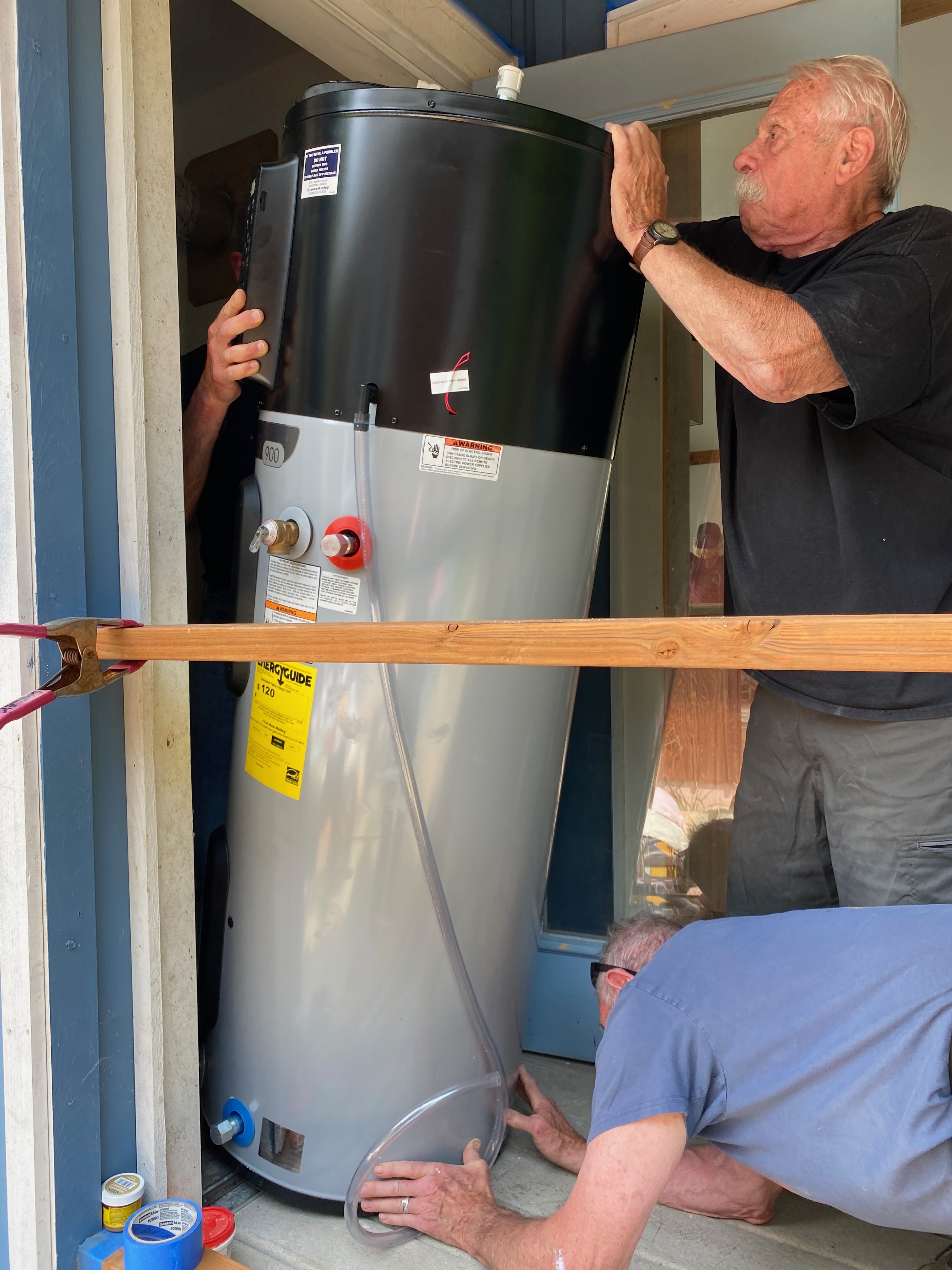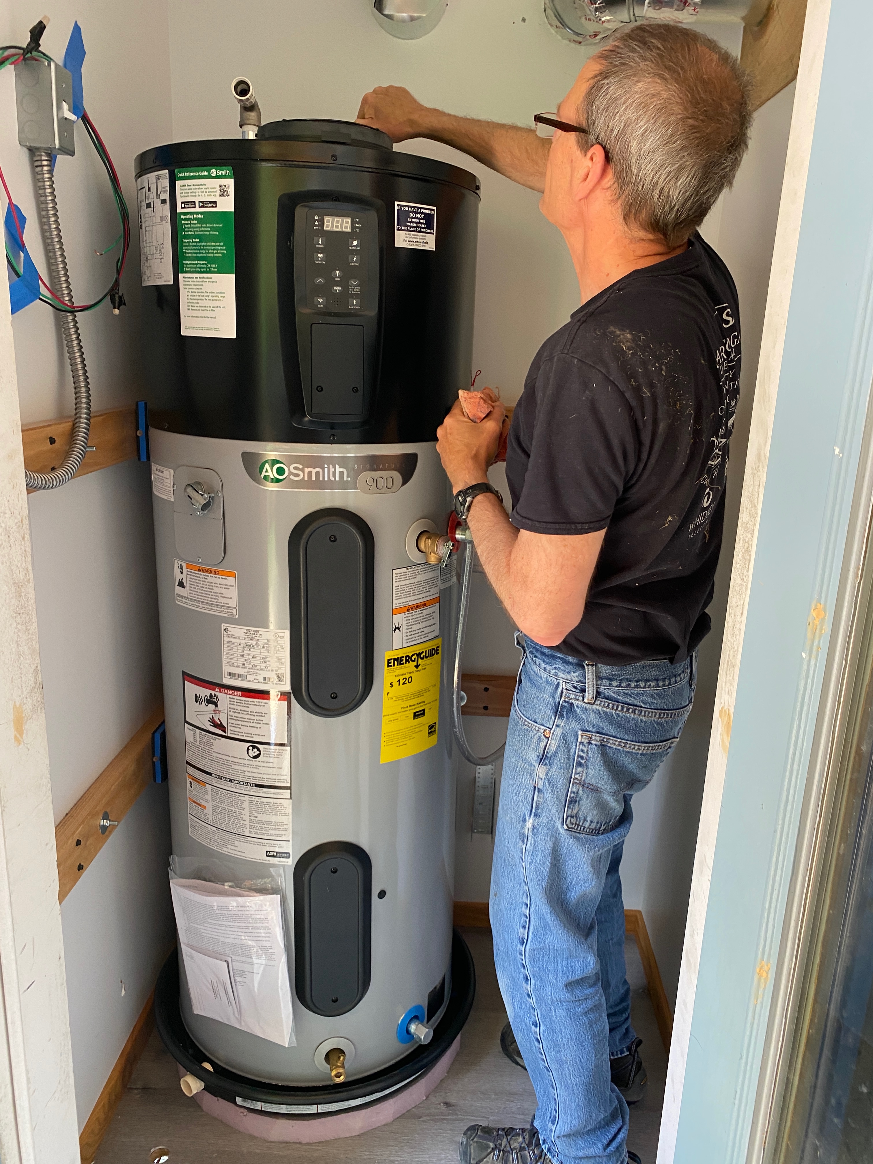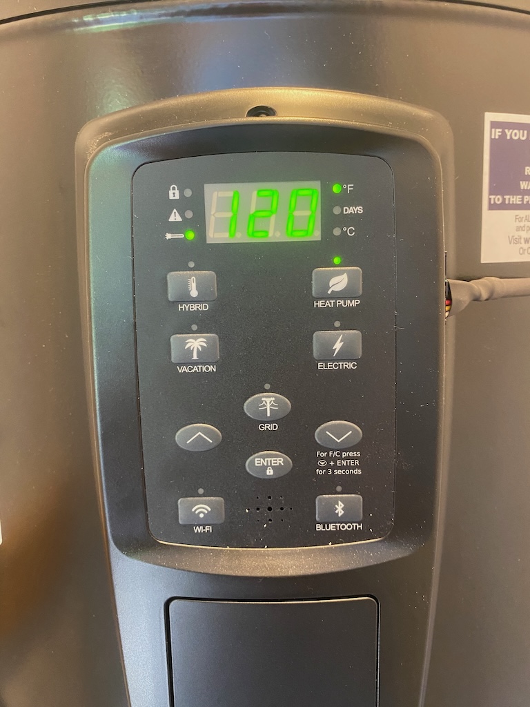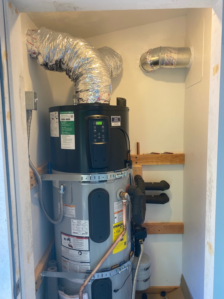 The hybrid hot water heater has been installed, and the water is hot!