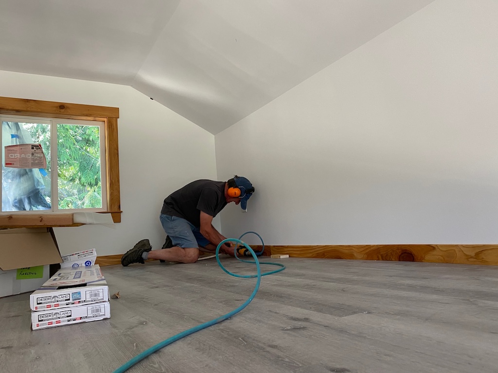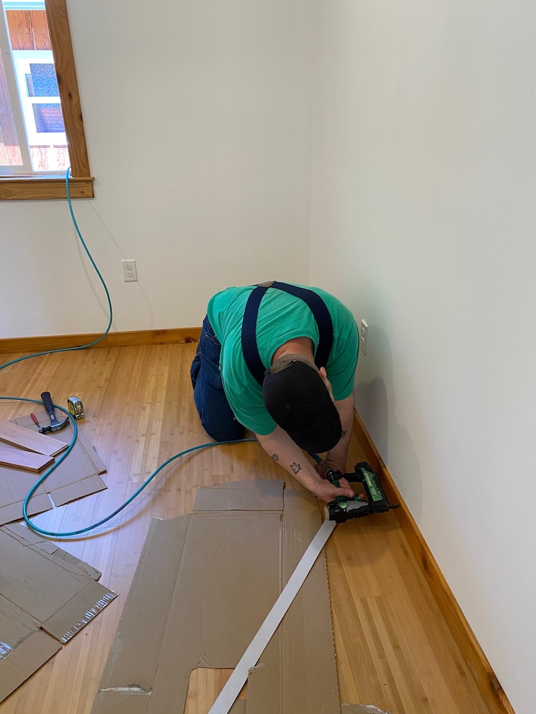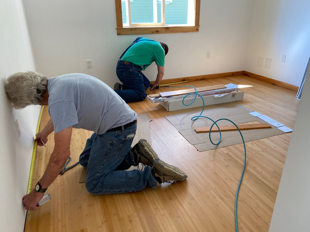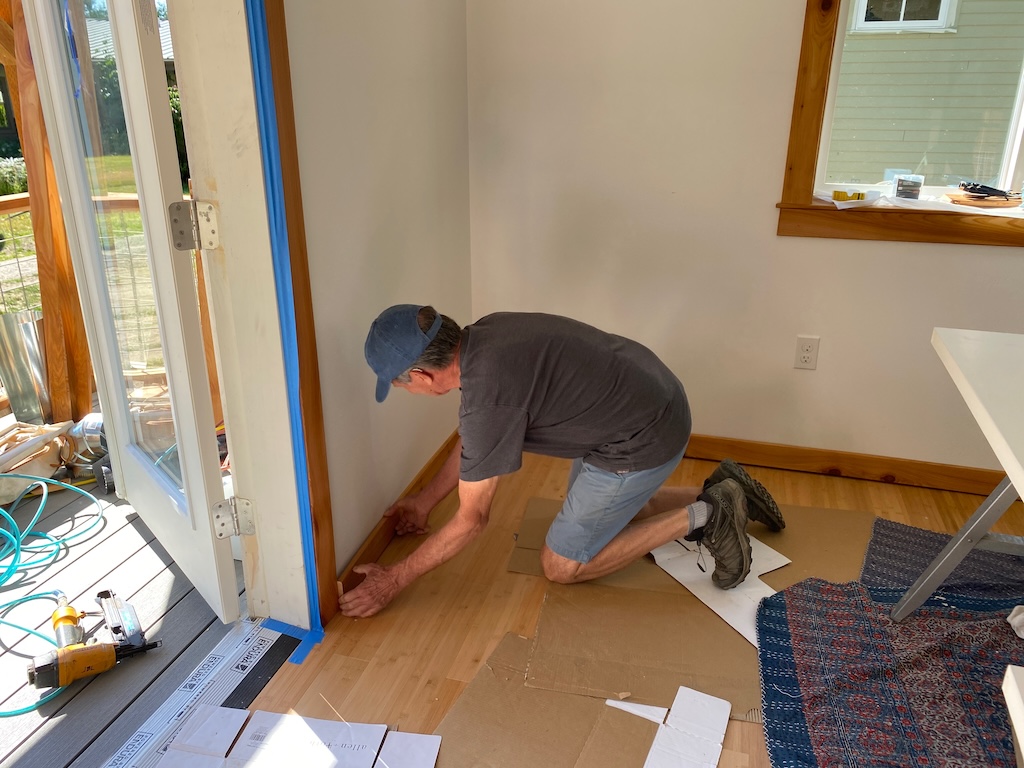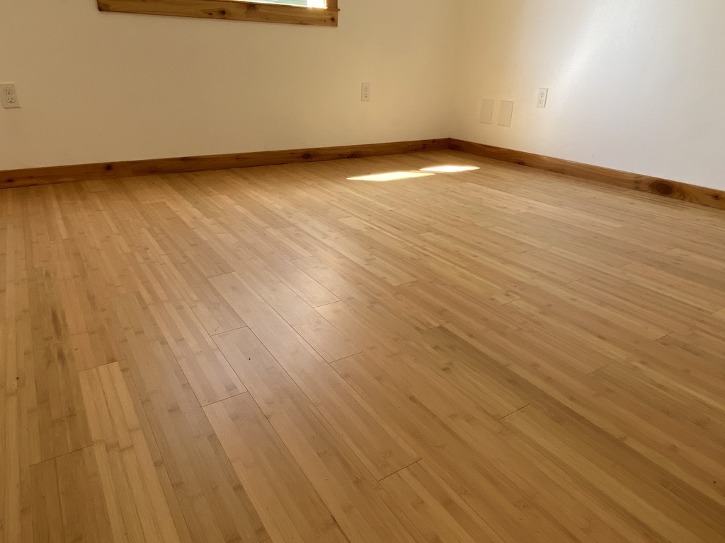 All the bamboo flooring is finished and the baseboards installed!