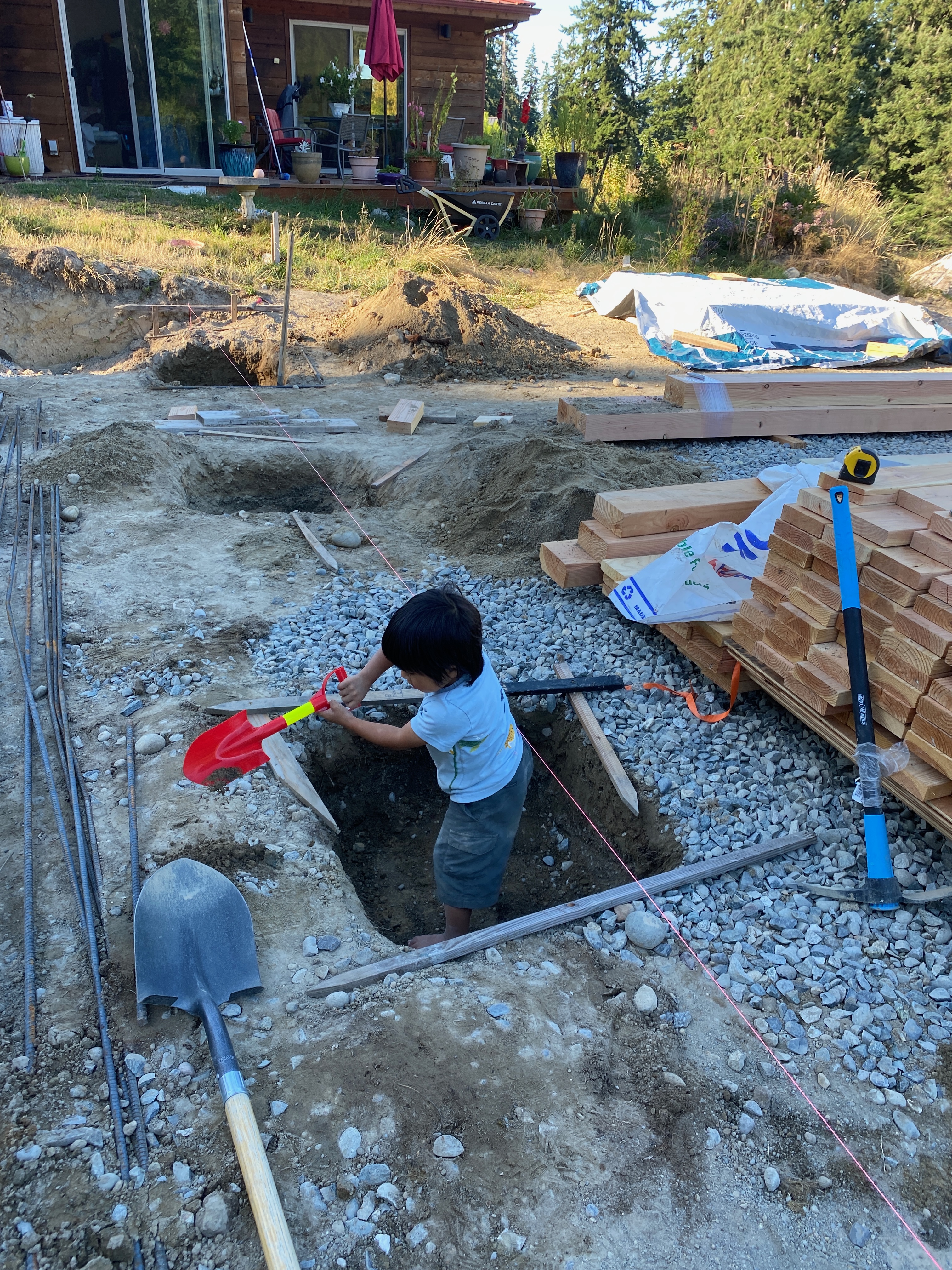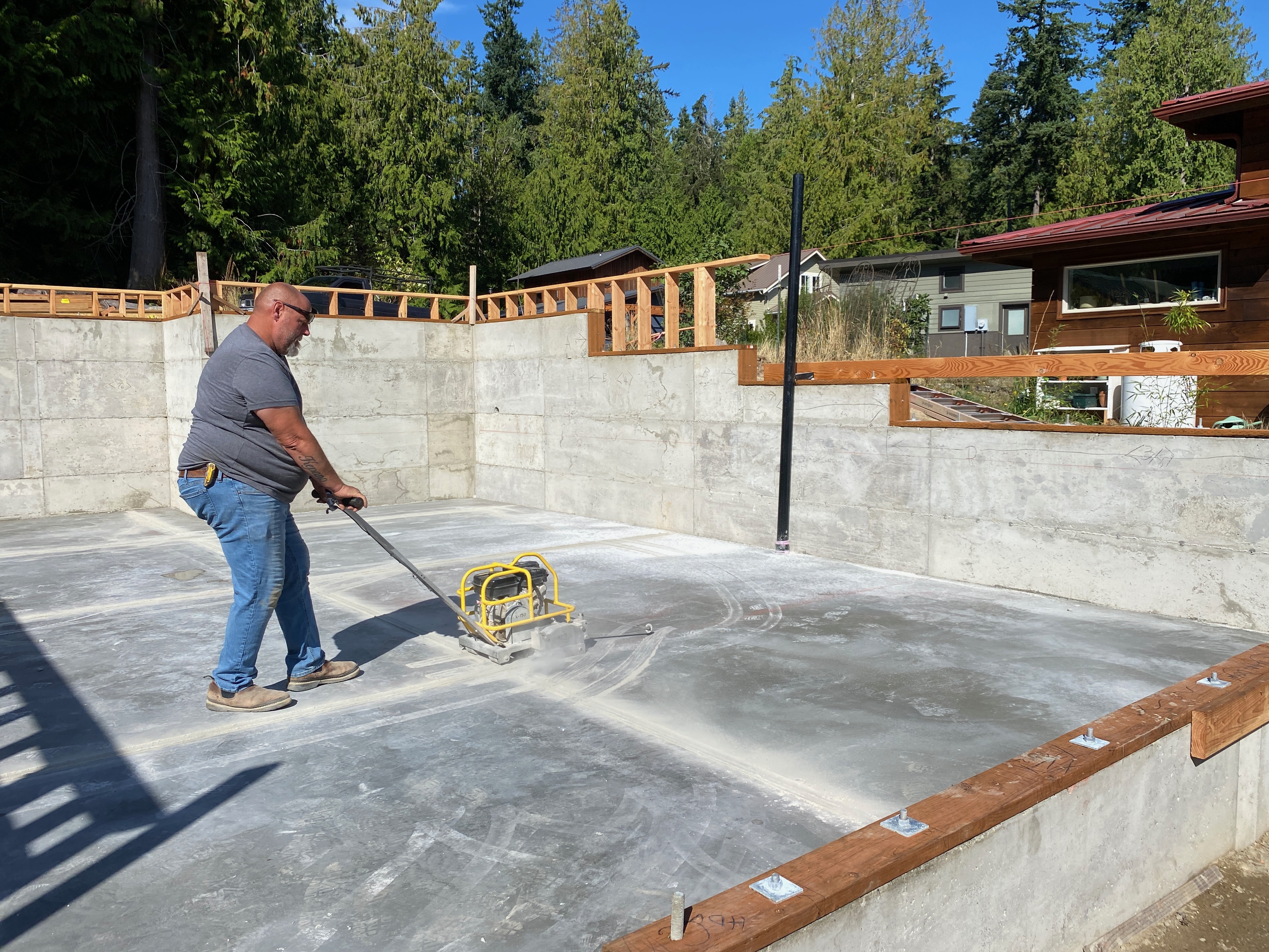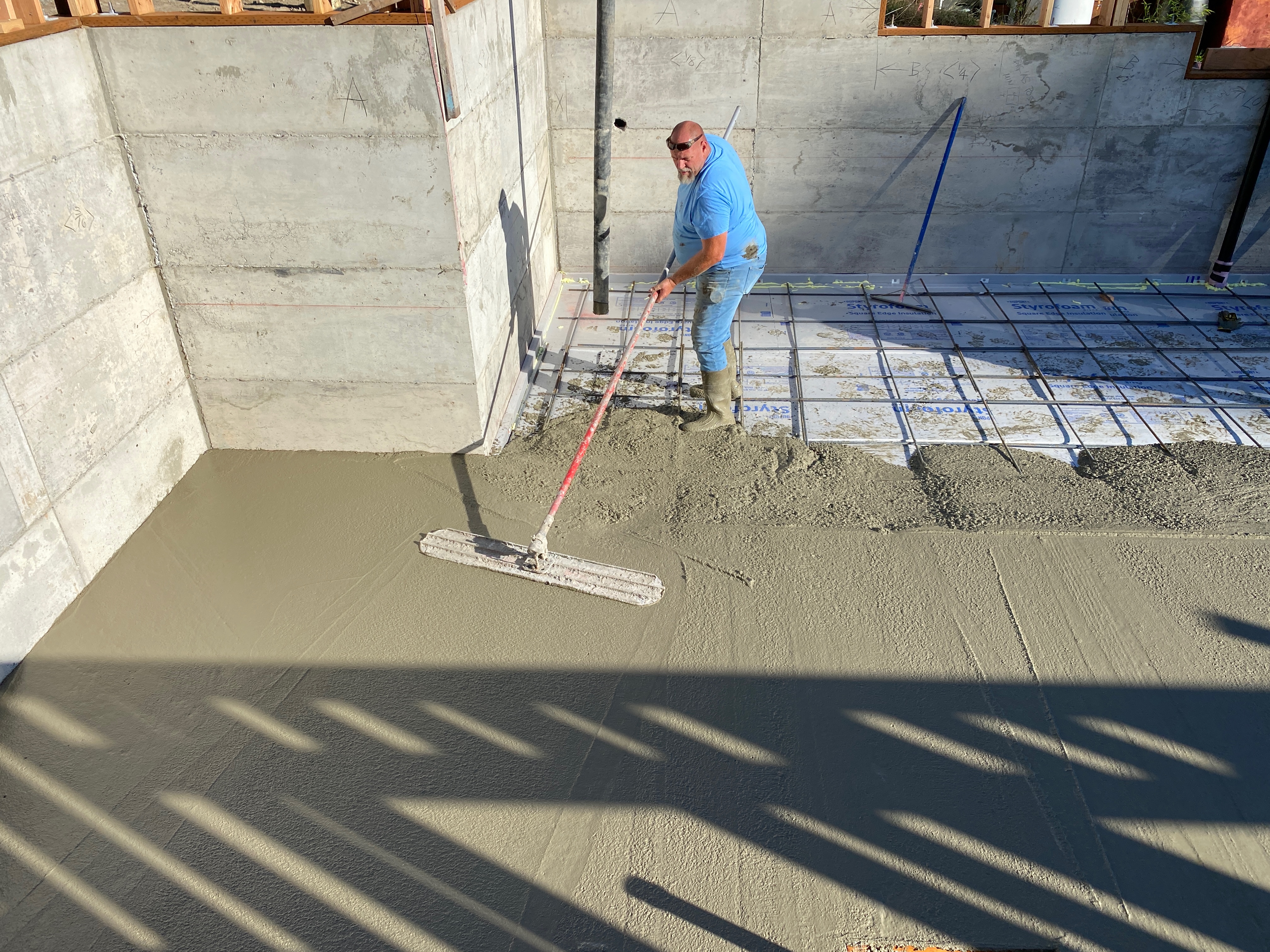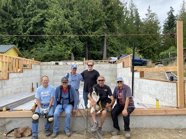First, the foundation fill needed to be leveled and compacted, vapor barrier laid down, insulation installed, and rebar laid down. Thank you Richard, Peter, Scott, Russell, George and Joe!