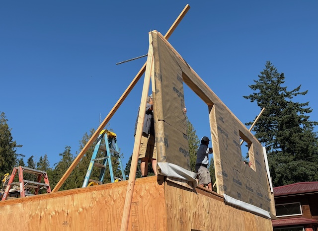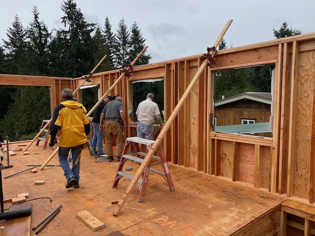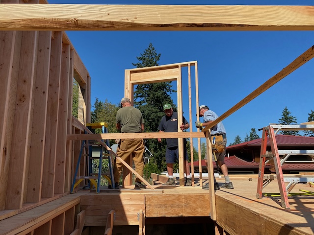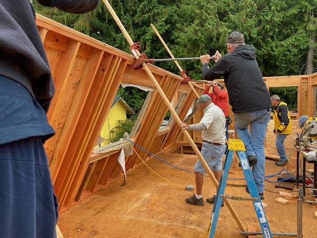 Next, we raised the walls! So many generous carpenters have been helping – huge appreciation to Scott, Richard, Blake, Hart, Peter, Dave, Tom, Joe and Bob!