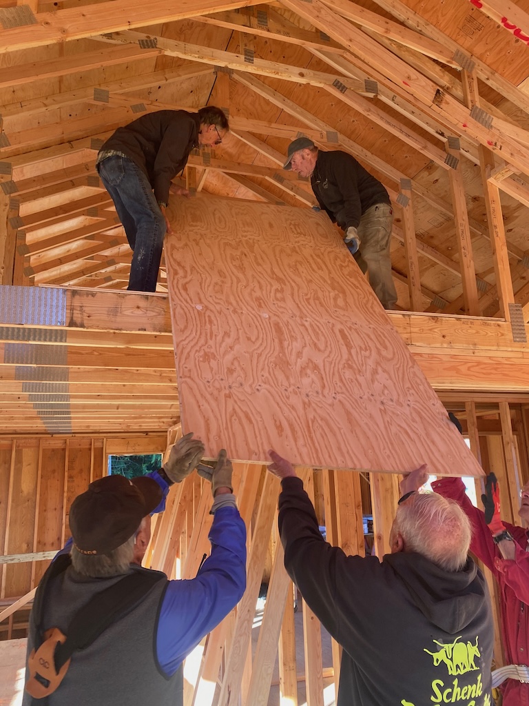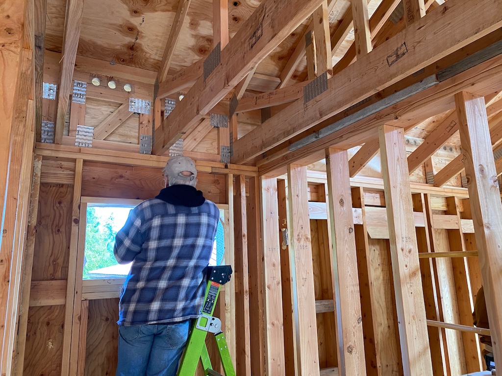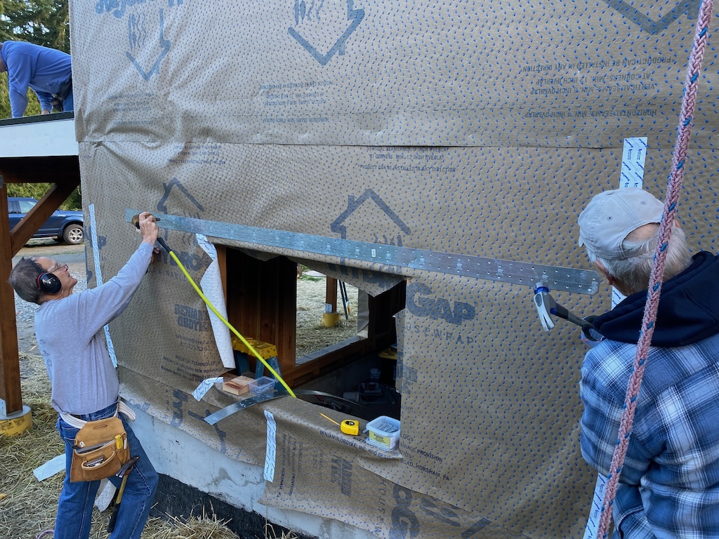 Installing the strapping that is making this house very sturdy, indeed!