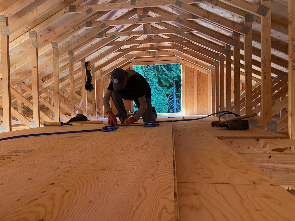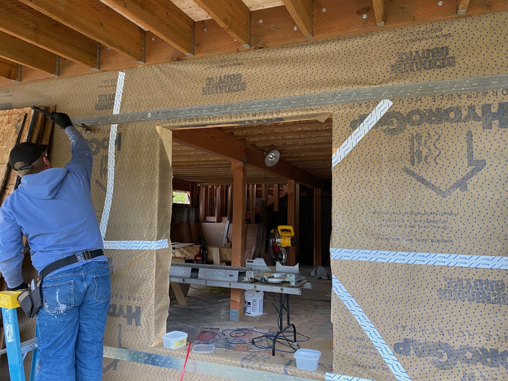 While work was happening on the roof and the east deck, great progress was made on the framing and the strapping.