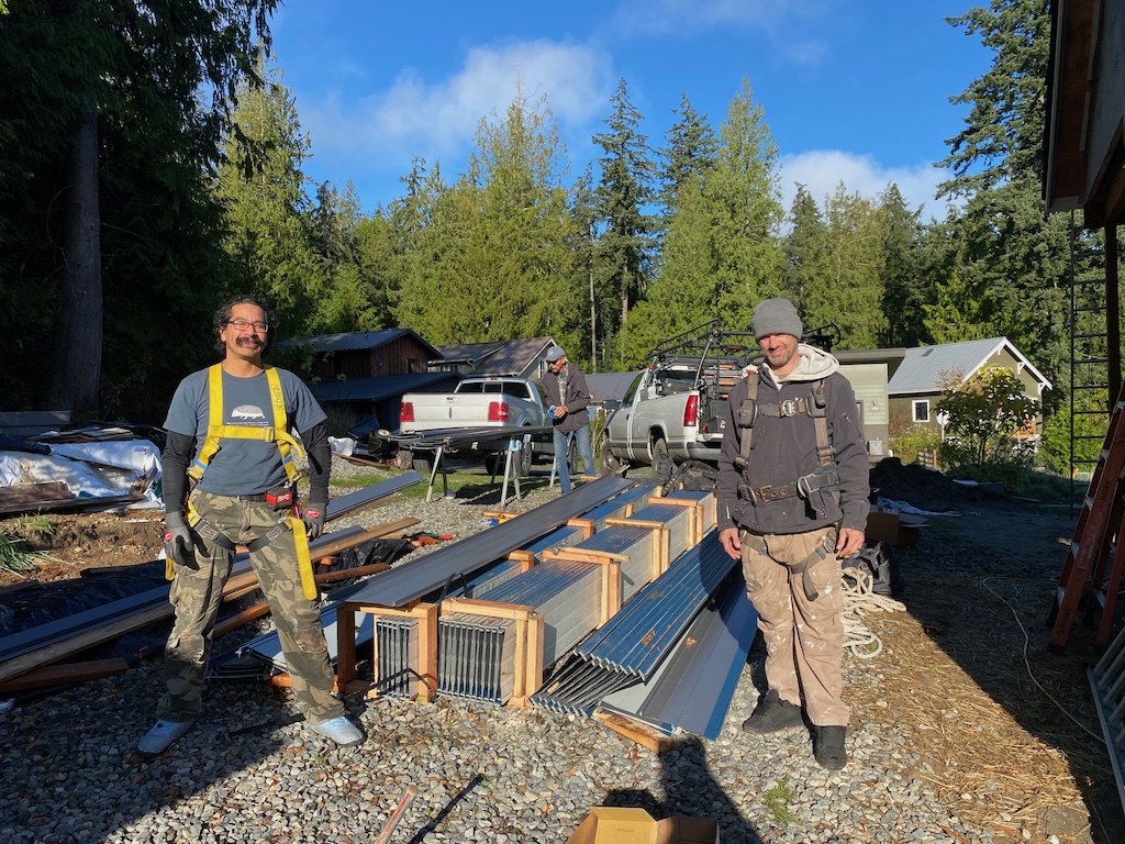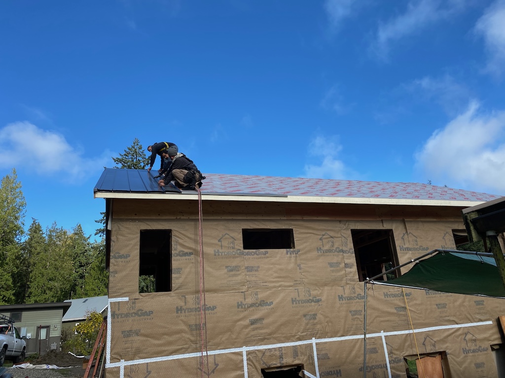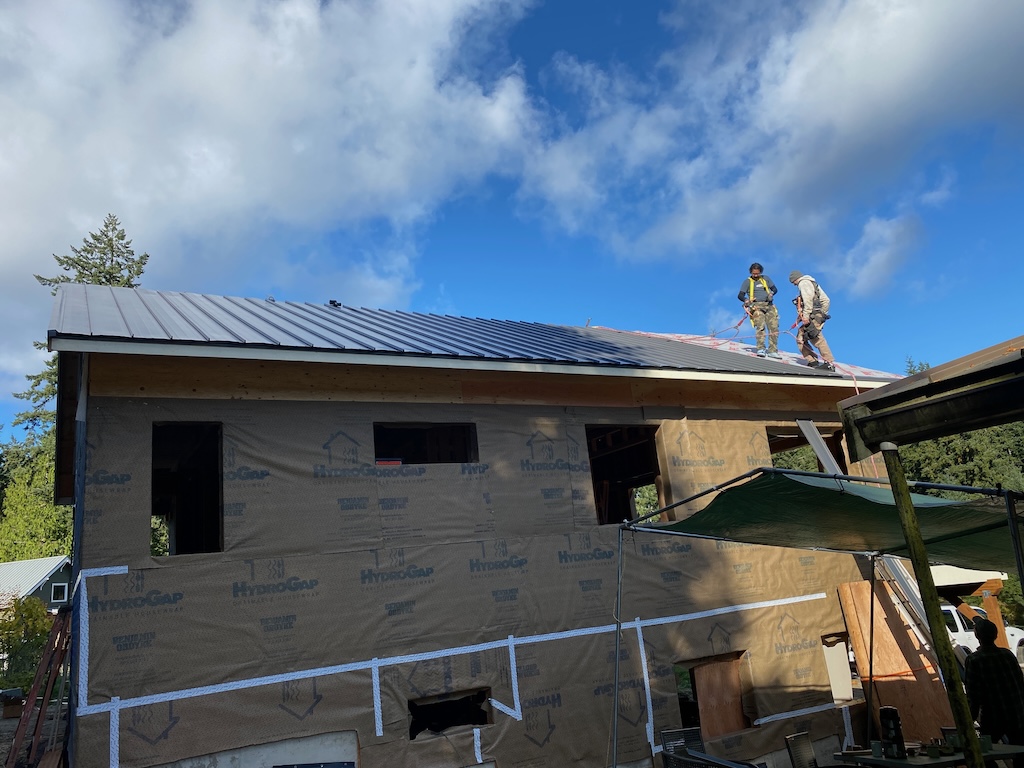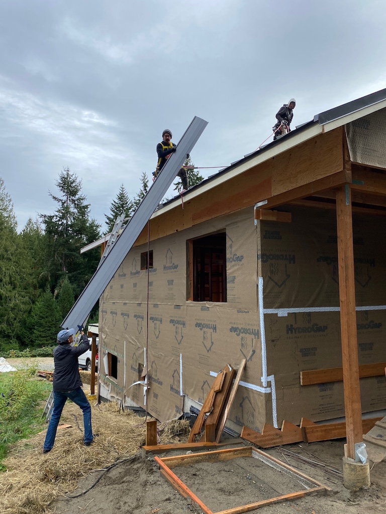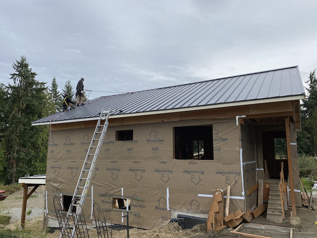 The rains cleared and Christian and Talen installed the metal roof, with ground support from Blake, on Oct 27 and 28th! Another milestone!