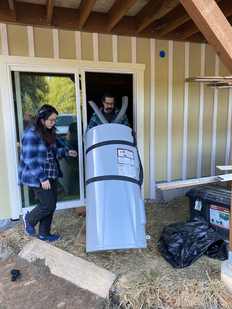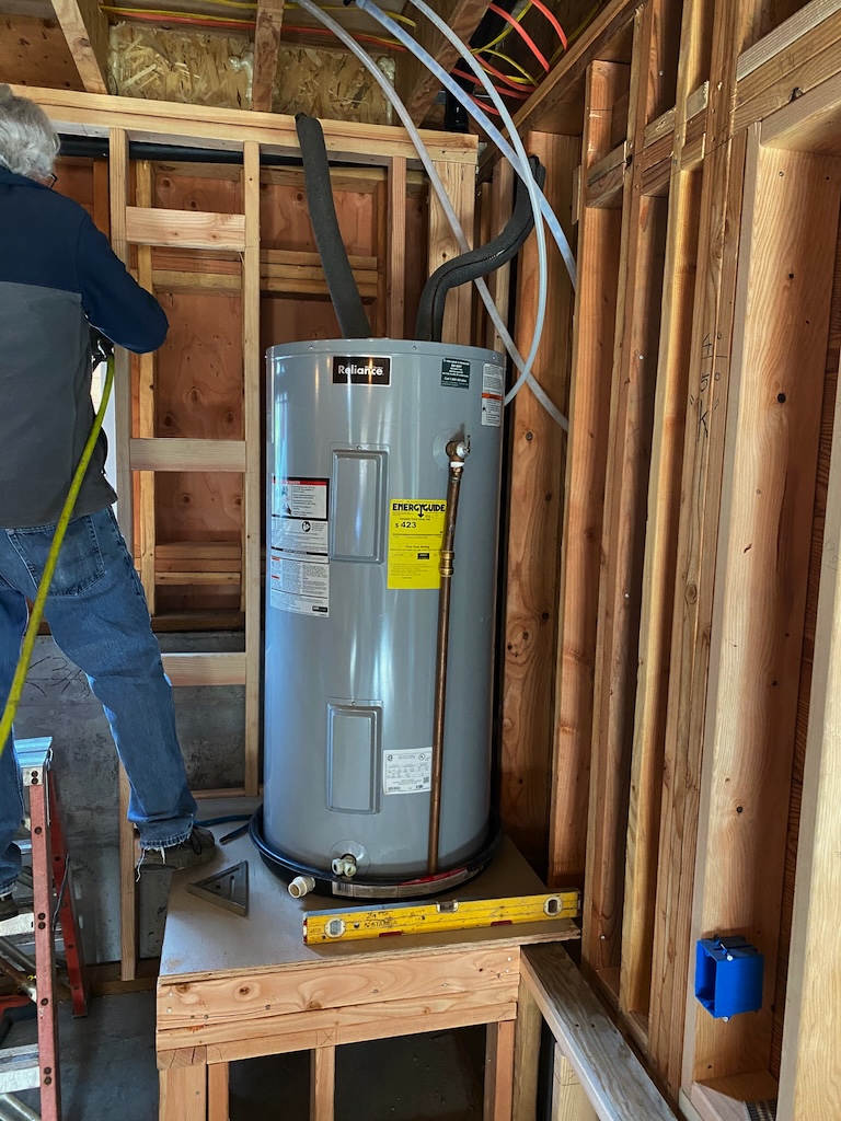 The hot water heater was set in place. Thank you to Kelly Webb for generously donating it!
