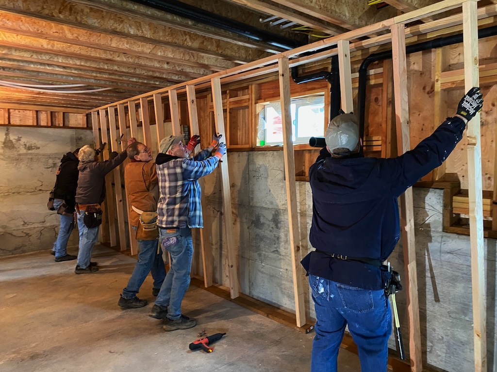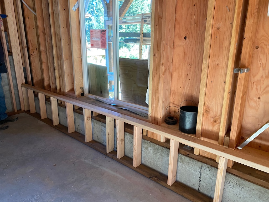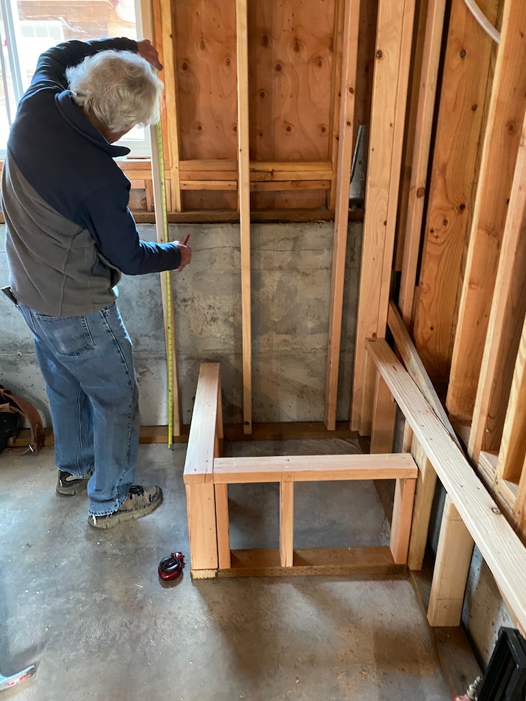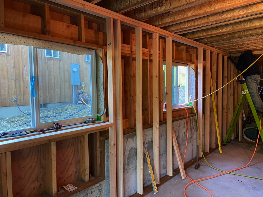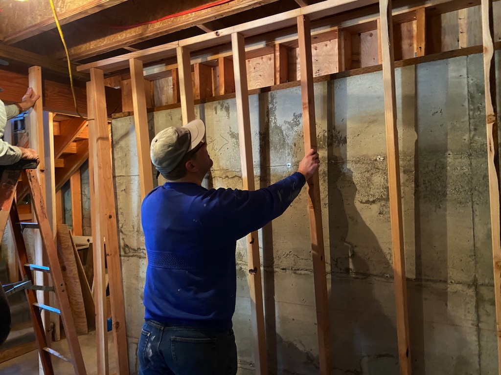 In order to install mini-split heating in the daylight basement, we needed to insulate it, which meant framing the walls.