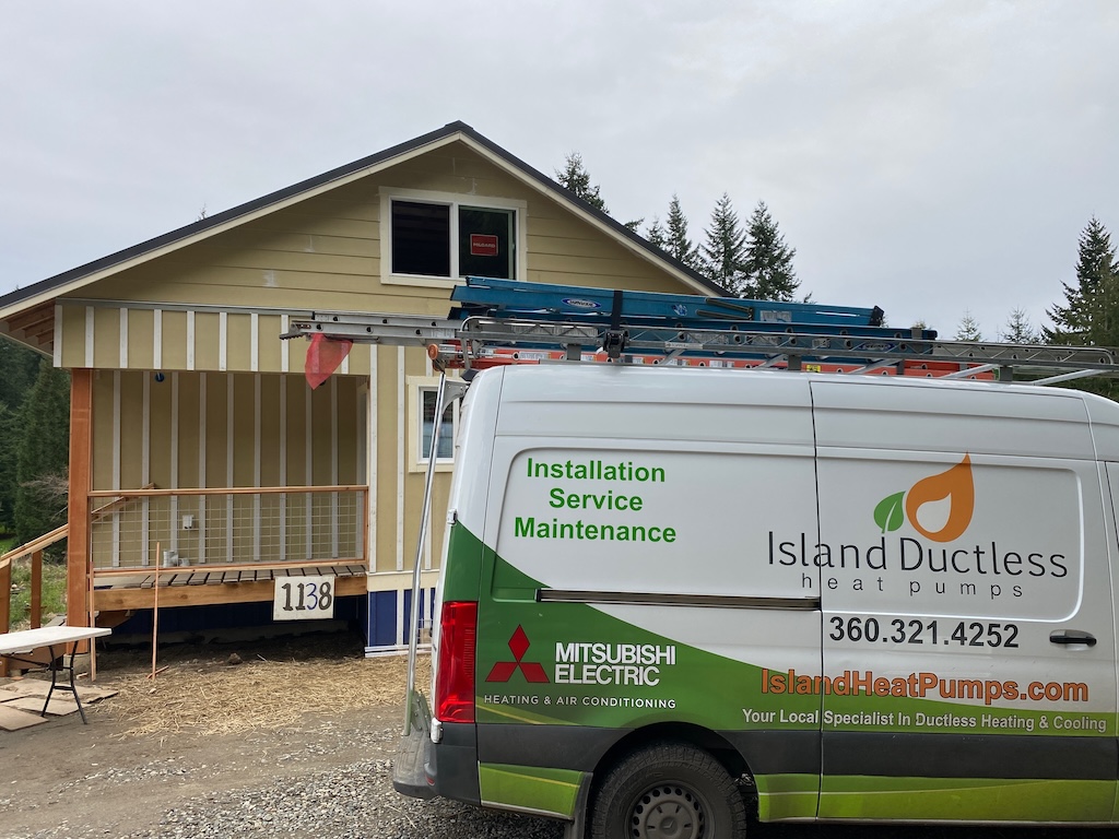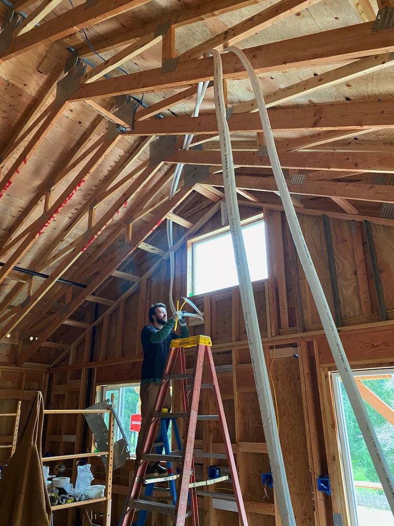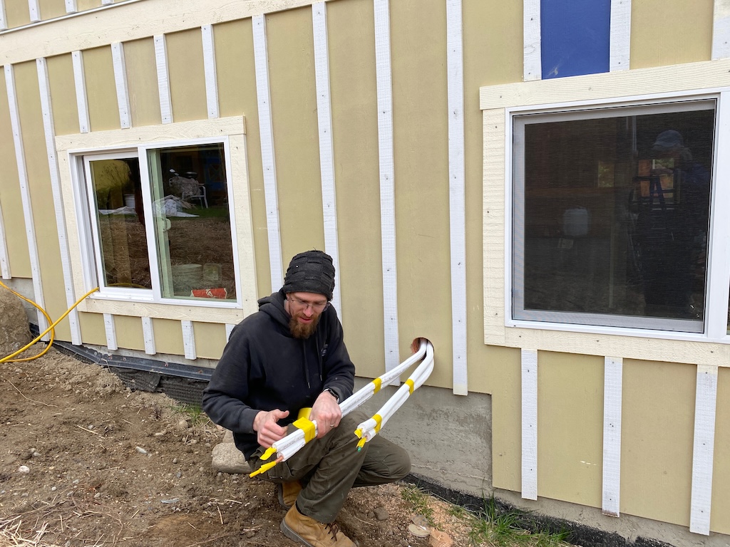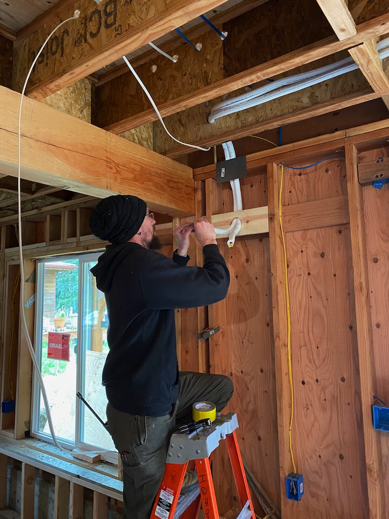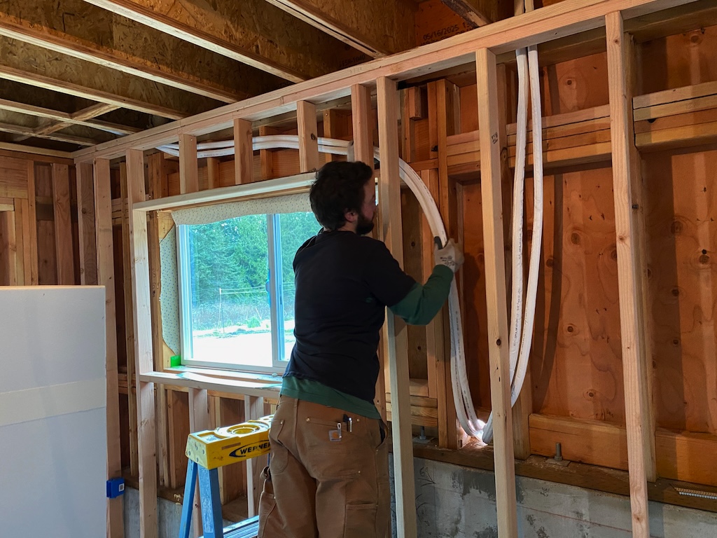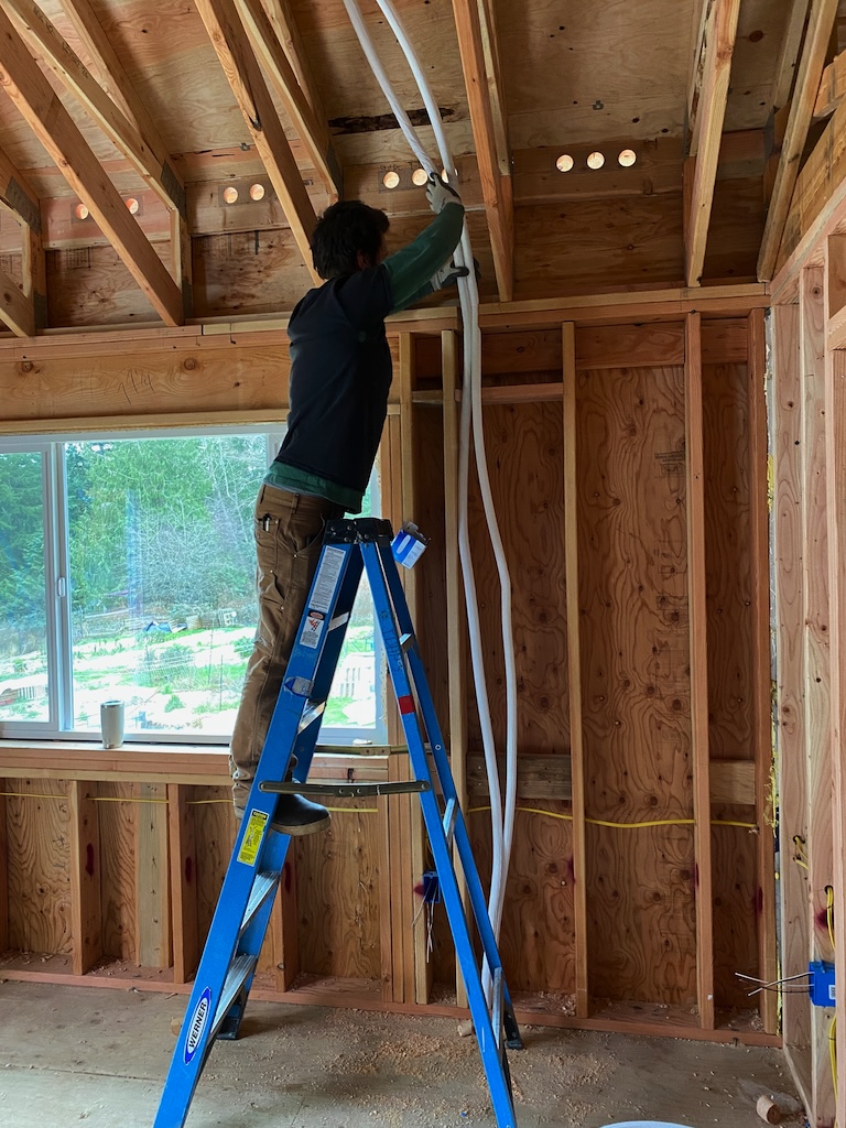 Huge appreciation to Island Ductless volunteers Wayne Carter, Max Gibson, and Jason Leavitt! Once the daylight basement was framed, they came and installed the lines for the mini-split. We also thank Island Ductless for their generous discount!