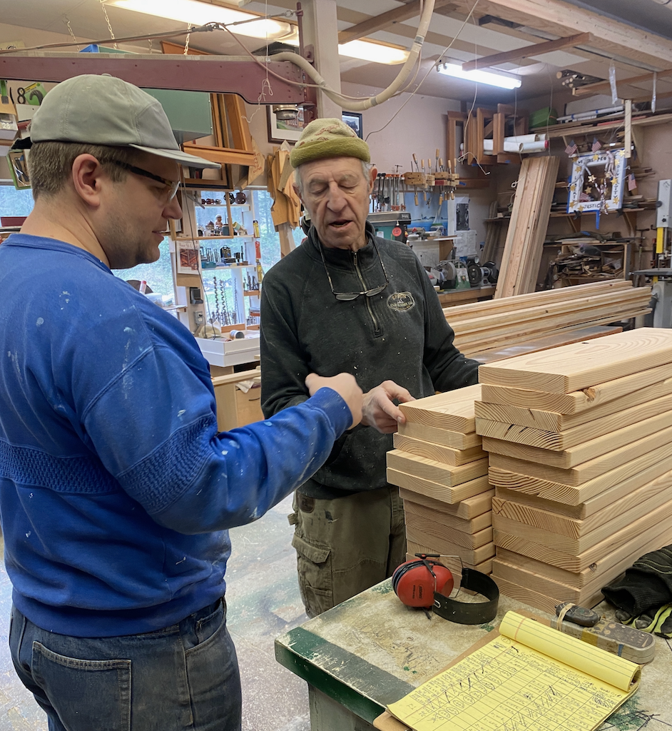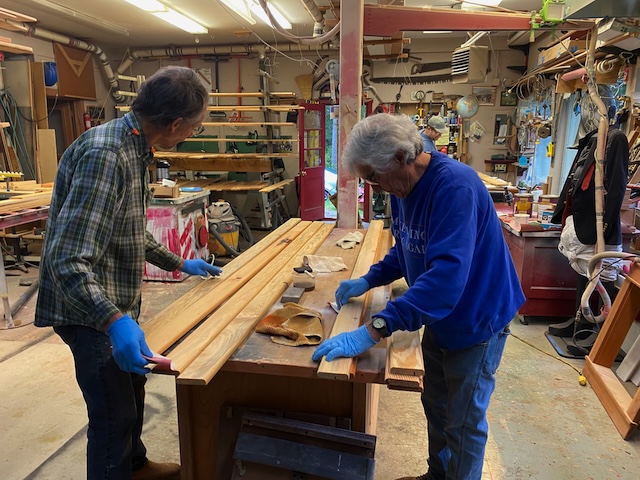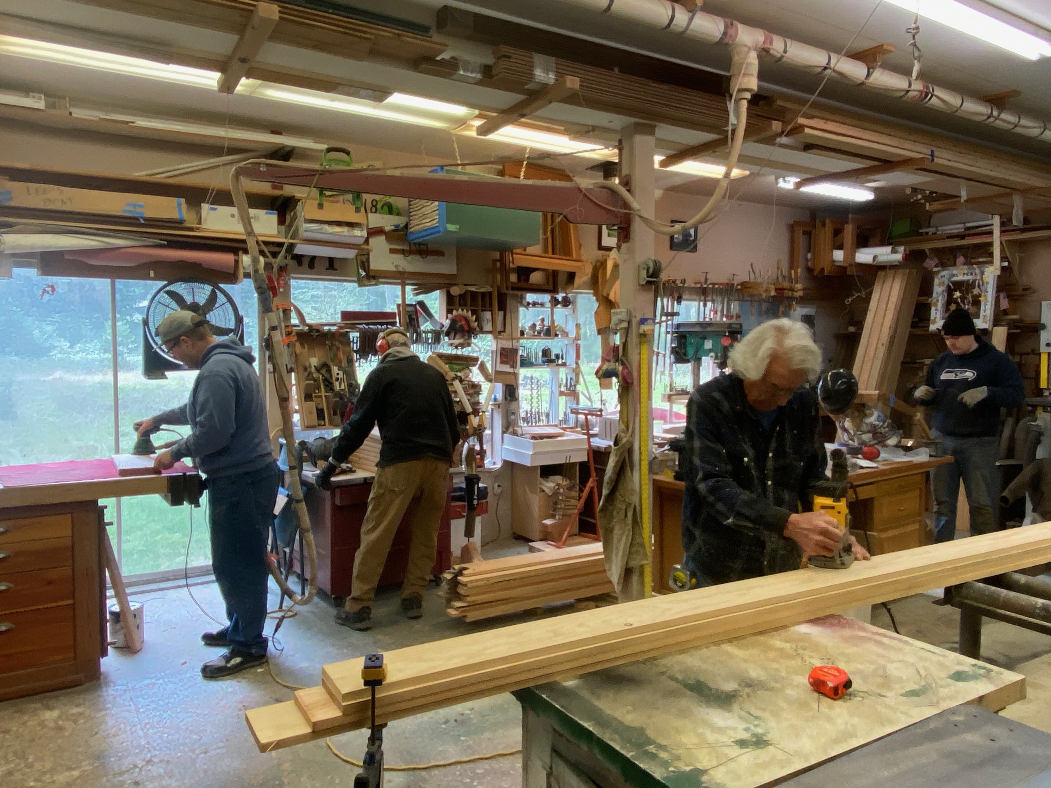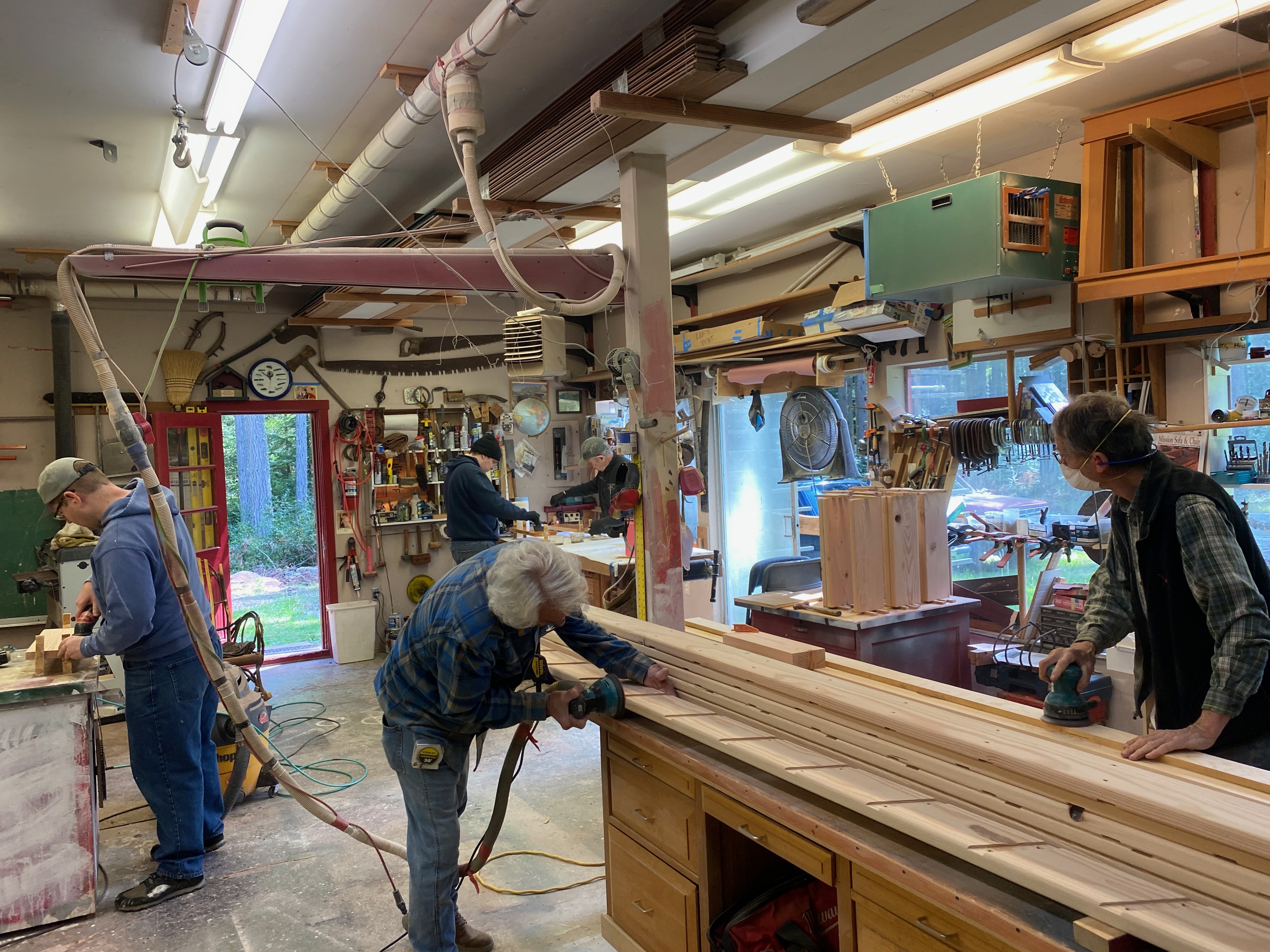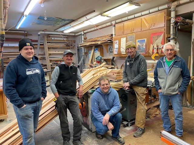 While the subcontractors have been busy at the house, Richard Epstein and his crew of finish carpenters have been prepping the trim. Big thanks to Russell, Scott, Hart, Richard, George and Blake (not in photo)! And to Gabbi for the treats and lunches!