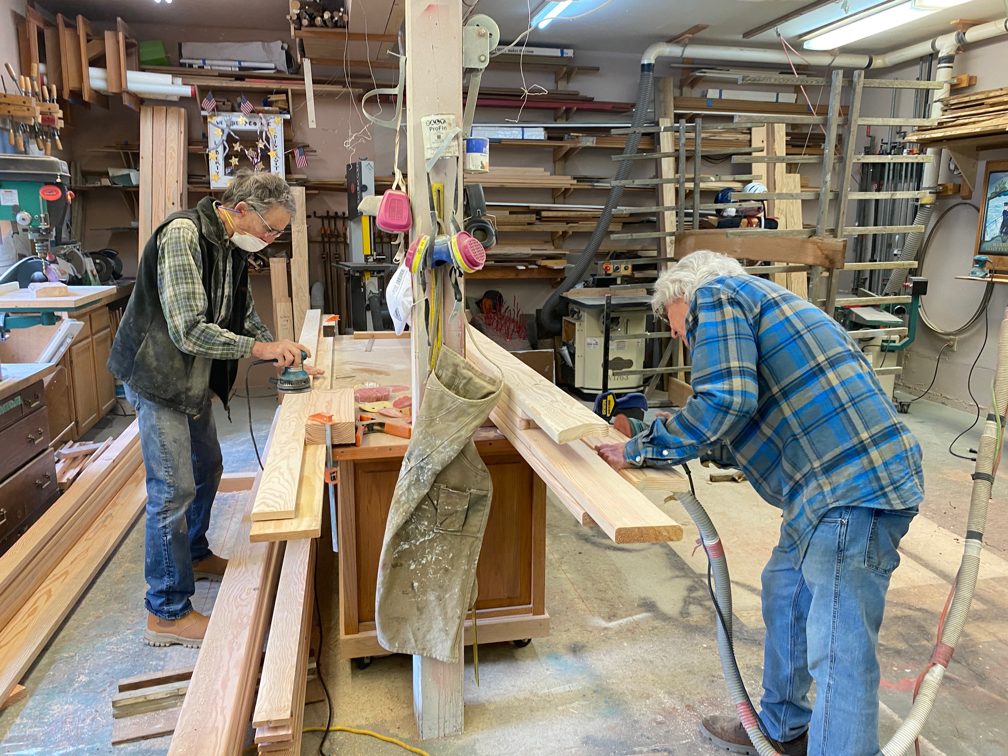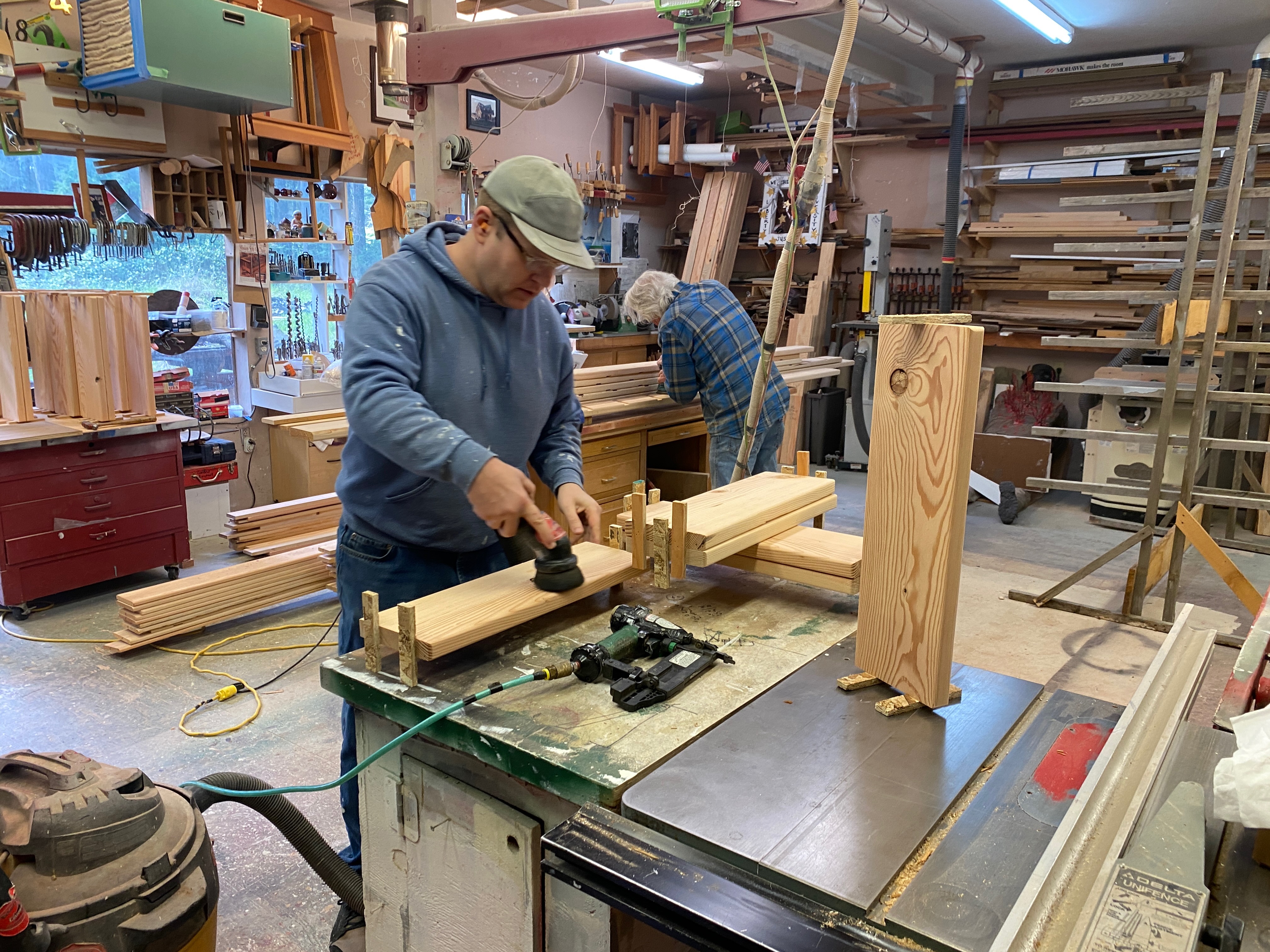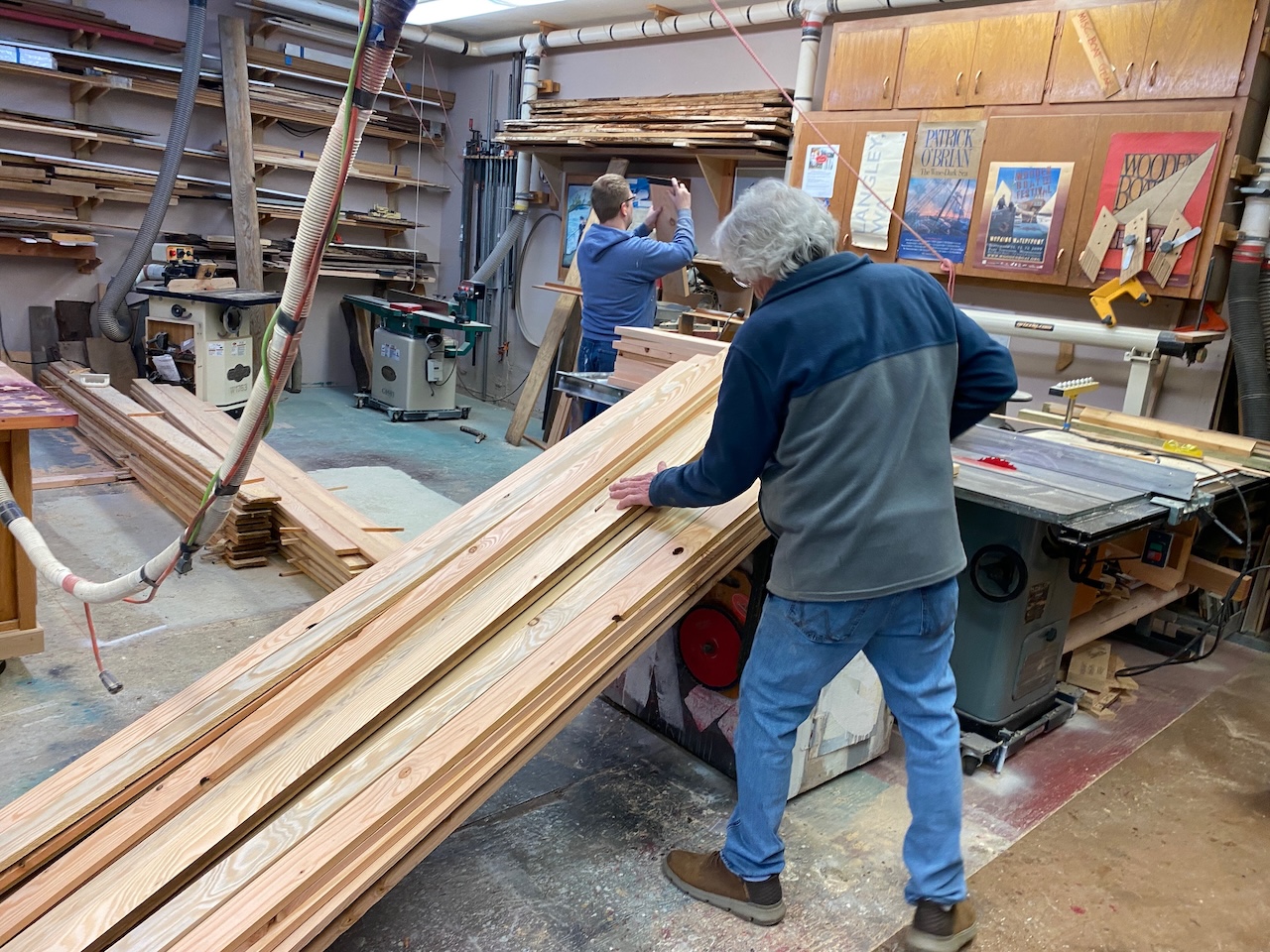 While the subcontractors have been busy at the house, Richard Epstein and his crew of finish carpenters have been prepping the trim. Big thanks to Russell, Scott, Hart, Richard, George and Blake (not in photo)! And to Gabbi for the treats and lunches!