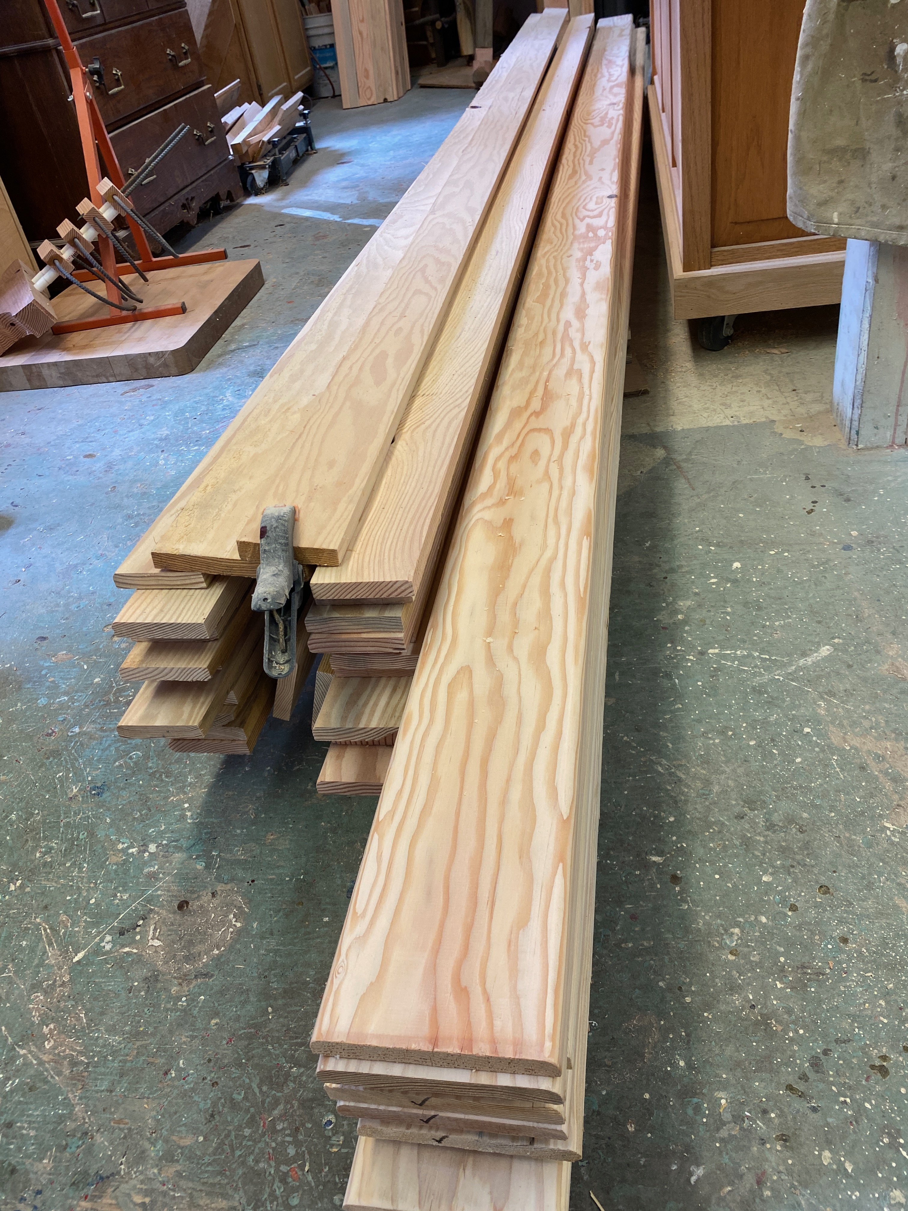 First, the utility grade fir was planed.